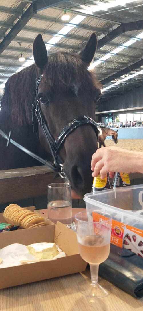 “Yes! H was on the long side getting treats. I had some carrots in my gloves but then we ran out. He was getting a bit bored waiting for our turn so Barry went back to the float to get some more carrots and apples. I think he might have even had a glass of alcohol while we were waiting!” she says with a cheeky grin.