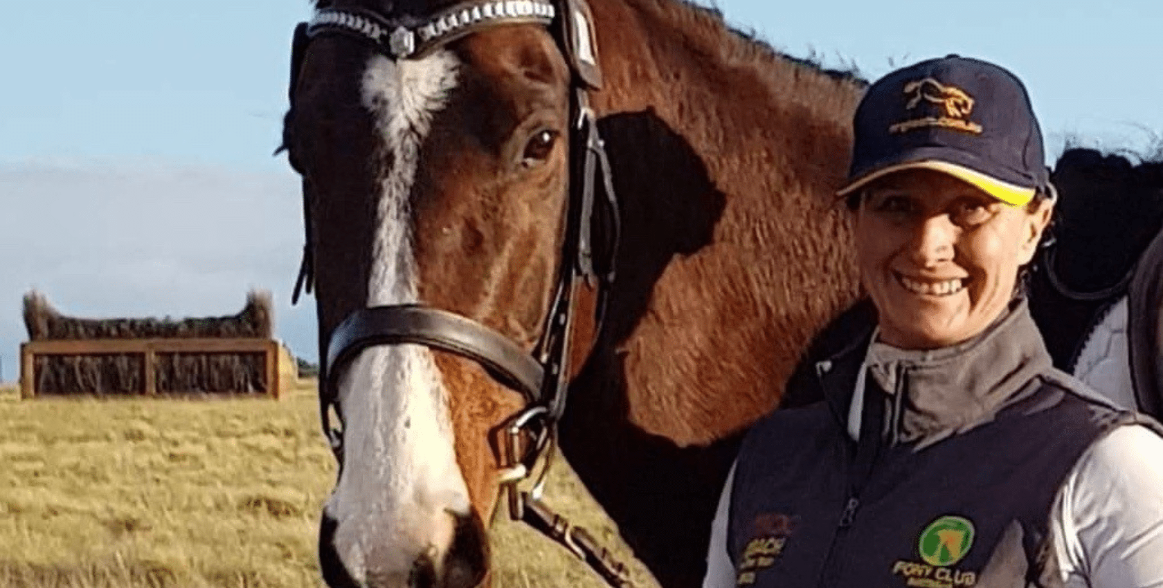 Meaghan Sutherland, pictured here with her horse Andy, received Pony Club Australia’s prestigious Gillian Rolton Memorial Alumnus Award. Image supplied.