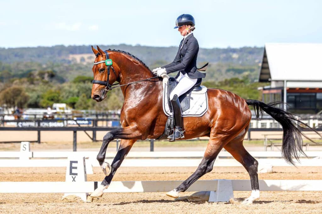 Jessica Dertell is making waves with stallion Osaka P. Their Open Medium and Elementary Championship wins at the Brisbane CDI confirmed them as an exciting dressage combination with enormous potential.