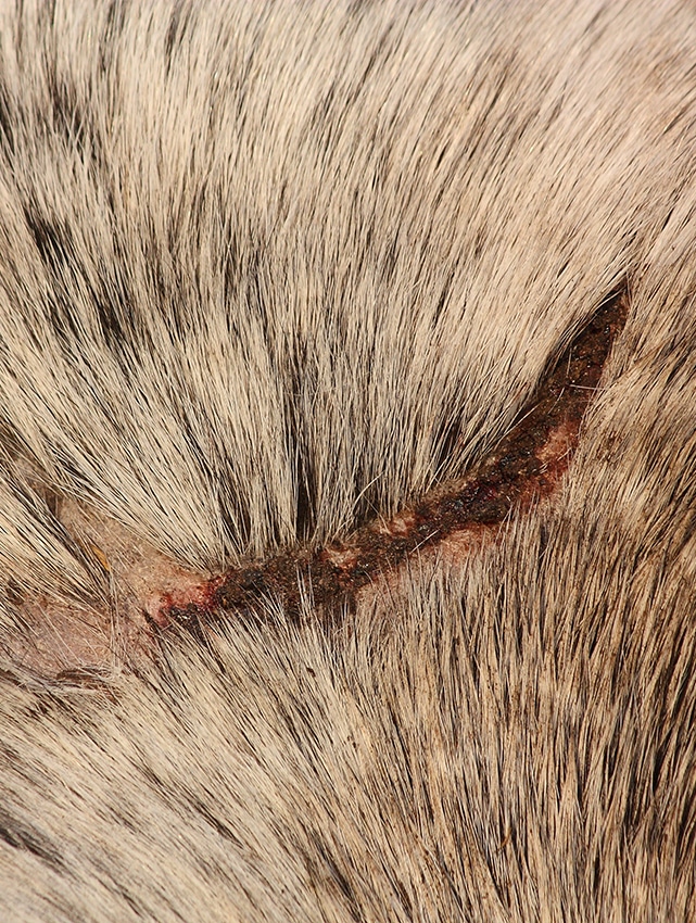 Many wounds can actually be closed in the field, and in some cases a veterinarian may opt to leave the wound open, or may place a drain into the surgical site to help release fluids during healing. Some wounds may require surgery or specialist treatment at a veterinary hospital.
