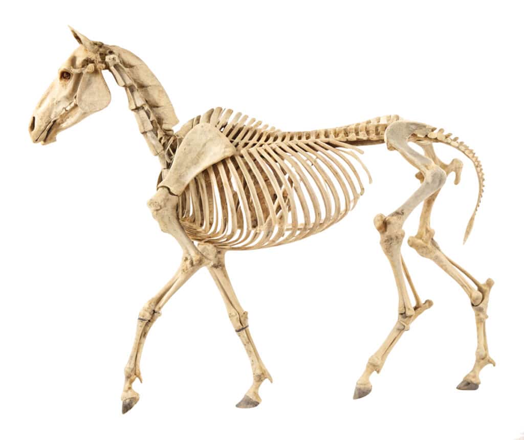 This is different to the extension seen when the horse humps the lower back when something is run over the sacroiliac and sacrum (the hindquarter). When the horse flexes its back, the space between the vertebral bodies opens and the dorsal spinous processes come closer together.