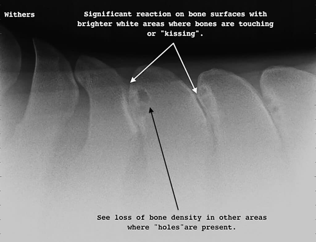 The same horse depicted in the previous X-ray, again showing kissing spines.