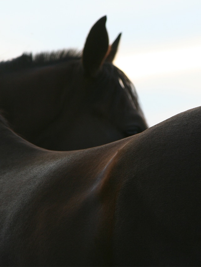 The spine is stabilised by several different systems: the small muscles and ligaments that interlink one vertebrae with another, the larger group of back muscles that run on either side of the spine, a number of ligaments that run along the top of the spine from the head to the pelvis, and the abdominal muscles that are responsible for the horse’s inner core strength. When these muscles and ligaments are not strengthened appropriately, the vertebrae lose their stability and this can allow the spine to “sag”, effectively allowing the top spinous processes of the thoracic vertebrae to come closer together and/or touch/override.