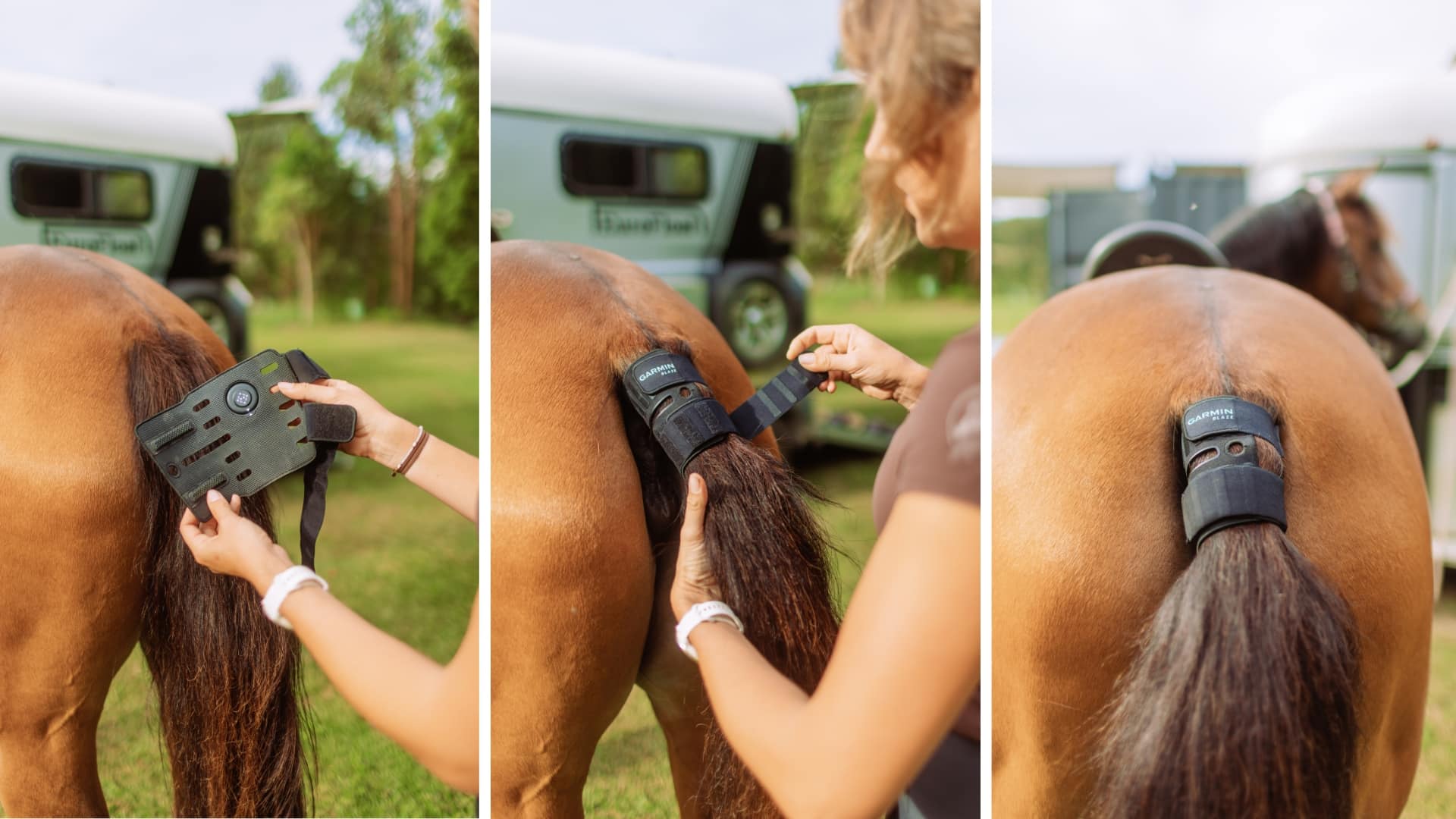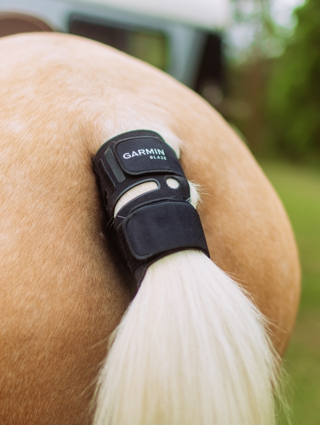 The Blaze™ Equine Wellness System begins with an easy-to-use tail wrap and sensor. Image supplied by Garmin.