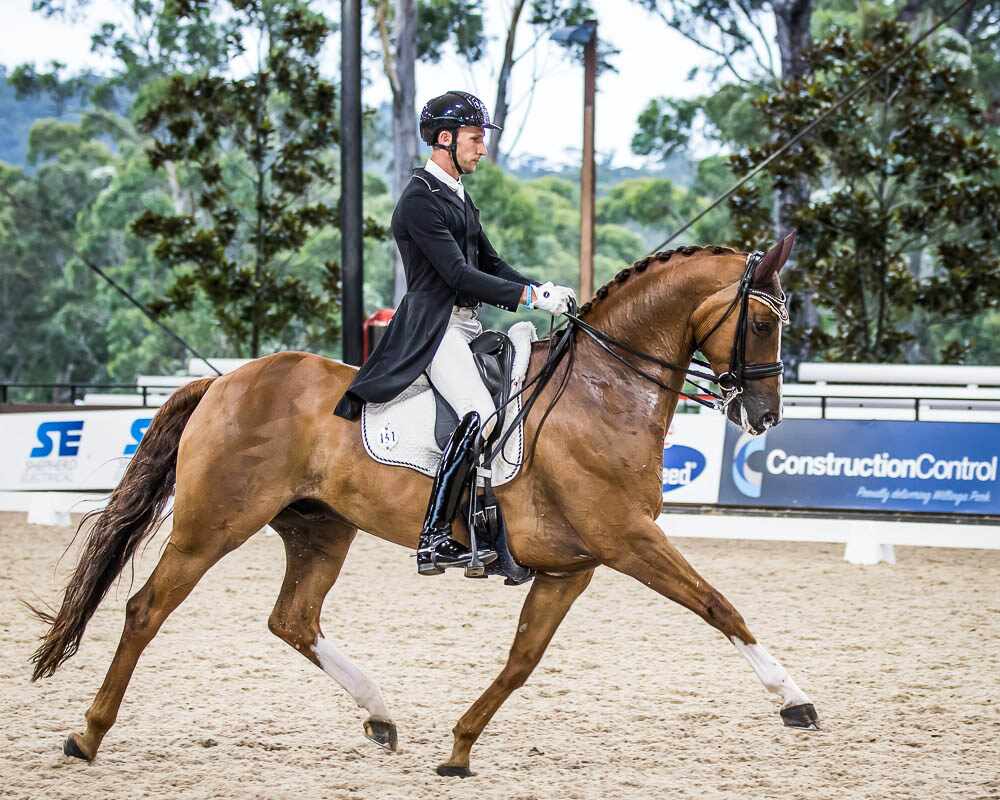 Jayden Brown is now a name synonymous with dressage at Willinga Park. A quiet and unassuming, tall and wiry young man, at 32 he has an empathetic passion to ride dressage to the very highest level. His attention to detail and compassionate yet determined and positive manner has every one of his horses on his side; honest and willing, enjoying their work.