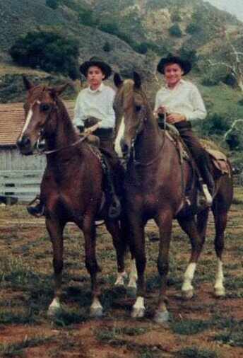 Image 1: Steffi Epper was Johnny Washbrook’s stunt double in the TV series. Image 2: Stunt double Steffi Epper on Goldie and Johnny Washbrook on Flicka.