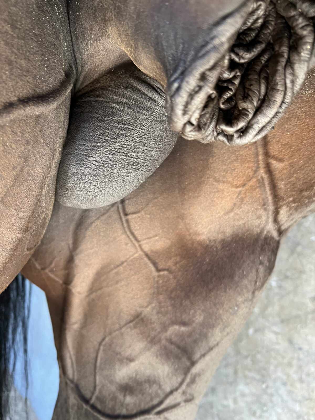A “rig” is the term used to describe a colt that has one testicle in the scrotum and one testicle still retained in the abdomen. © Maxine Brain.