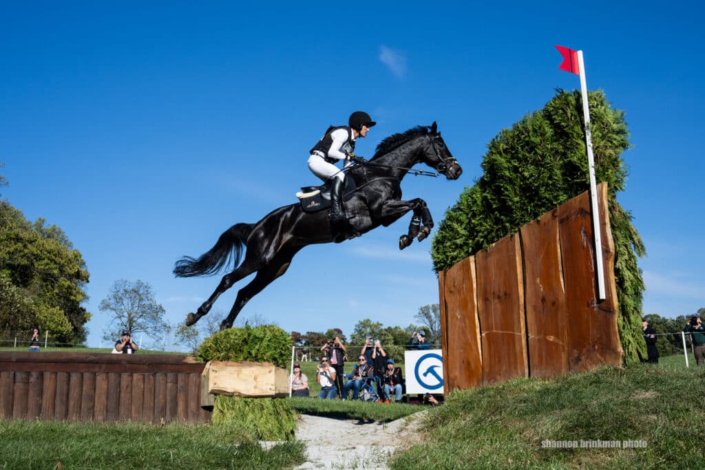 Monica Spencer (NZL) and her 14-year-old Thoroughbred gelding, Artist lead the CCI5*L. Image by Shannon Brinkman Photography/Maryland 5 Star.