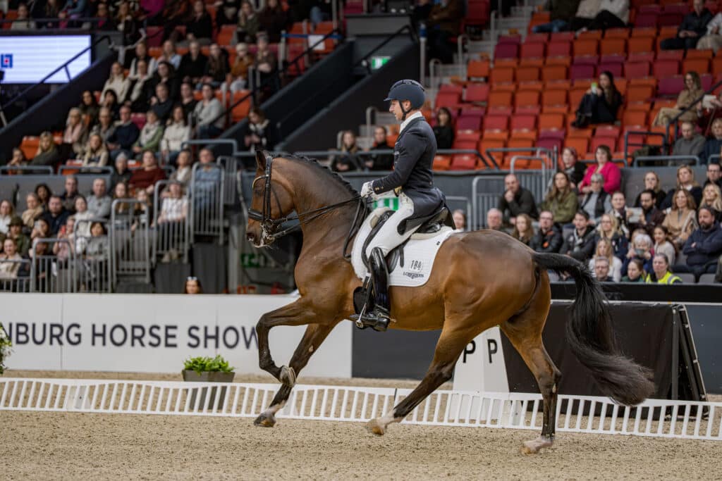 Von Essen and Invoice (owned by Alexanders Hovslageri & Häst) had already delivered a solid Grand Prix on Friday, although the gelding was still somewhat restrained. In the Freestyle, however, he showed his full potential, excelling in the most collected movements. Their Les Misérables Freestyle suited Invoice perfectly, with expressive piaffe and passage work and tempi changes executed precisely on the beat.